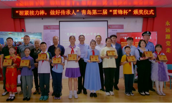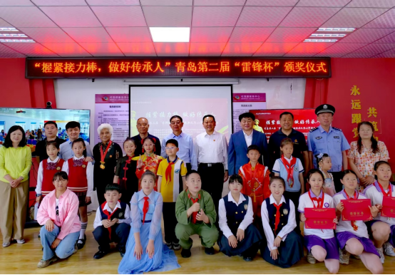 盛世欢歌庆六一,褒奖先进诚嘉许。2025年6月1日,在第七十五个“六一”国际儿童节到来之际,一场别开生面的“握紧接力棒 做好传承人”青岛第二届“雷锋杯”大赛颁奖活动在岛城举办,场面热烈,精神振奋。此项活动由青岛市雷锋精神研究会联袂中国社会福利基金会学雷锋基金管委会、中华志愿者协会传承雷锋精神工作委员会(简称“全国学雷锋两会”)、青岛市社会科学联合会、青岛市关工委共同主办,山东良建律师事务所、掌上青岛志愿者协会,城阳区红岛街道中心小学、白沙湾学校、滨海学校、四方小学等单位共同承办。青岛市雷锋精神研究会发起人、党支部书记王发令,“全国学雷锋两会主任”李天文分别致辞、讲话,青岛市关心下一代工作委员会青年课外教育团长刘长敏宣读获奖者名单,青岛市雷锋精神研究会副会长张新村、张磊、栾建军、闫军、王正超,山东良建律师事务所主任鲍文捷、有关方面负责人和先进典型嘉宾代表刘红亮、肖梅琳等出席活动,为“美德少年”等120名优胜者颁奖,各学校学雷锋小军团、雷锋精神研究会演唱团,表演了以传承弘扬雷锋精神为主题的精彩的文艺节目。