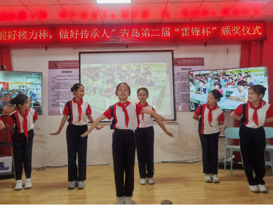 在刘长敏宣读颁奖通报后,分别为“美德少年、优秀小军团、优秀志愿者、优秀组织者、优秀家委会、雷锋精神传人”颁奖。红岛中心学校肖娜老师、家委会代表邓文娟同志等,分别发表获奖感言,表达她们参加学雷锋活动的收获体会和继续更好地传承弘扬雷锋精神的决心。颁奖环节穿插的文艺节目,深刻诠释雷锋精神时代内涵和实践成果。红岛中心学校朗诵的《承影者》,以铿锵语调宣誓传承决心;太平路小学李智雅同学《雷锋的足迹》朗诵,展现“平凡铸就伟大”的真谛;合肥路小学融合舞蹈与书法的《仰望雷锋》,以艺术跨界形式呈现青少年对雷锋精神的全面理解;崂山金融区实验小学曲怡萱的独舞《九州同》,将中华传统美学与当代少年志向相结合,彰显文化自信与精神传承的有机统一。文艺节目精彩纷呈,生动展现了传承主旨与坚定信念。