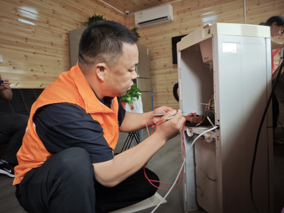 维修台前,具有20年家电维修经验的马纯亮正专注地检测一台饮水机,他也是中牟县第十三届“当好主人翁,建功新时代”优秀农民工。几分钟后,饮水机正常通电,解决了不能加热的问题,居民连连道谢。