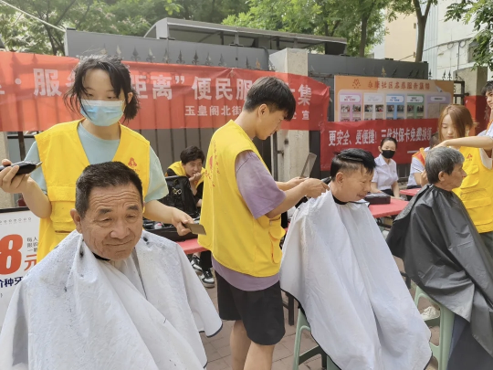 活动现场,各项服务与宣传活动有序开展,为居民带来了便利与关怀。红玫瑰理发学校的志愿者们早早准备好理发工具,为老人们精心修剪头发,精湛的手艺和热情的服务获得了老人们的一致好评。对于行动不便的老人,志愿者们更是主动上门,让老人们足不出户就能享受贴心的义剪服务。“看到老人们剪完头发后开心的笑容,我觉得特别有成就感,能在父亲节为大家做点事,很有意义。” 参与义剪的志愿者小王笑着分享道。