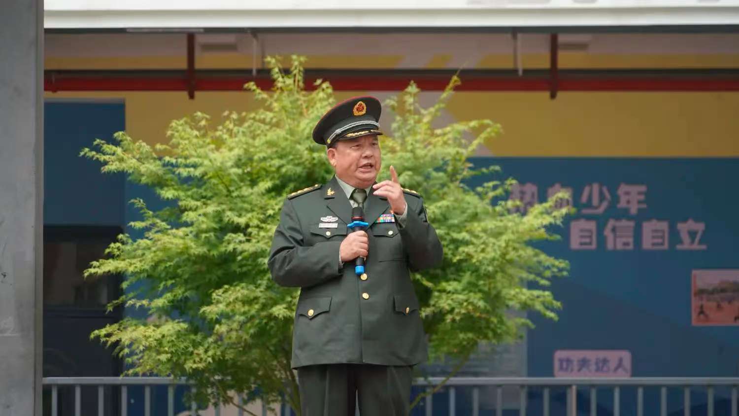 原雷锋连第十五任指导员、长沙市“五老”金牌讲师团、老兵宣讲团、志愿精神讲师团、雷锋部队雷锋精神讲师团讲师欧阳华初为孩子们带来了一堂生动而深刻的思想教育课。他结合自身经历,娓娓道来,激发学生爱国之情、报国之志。欧阳指导员结合即将在北京举行的纪念抗战胜利80周年盛大阅兵式,阐述了伟大的抗战精神,希望孩子们读懂革命先烈的爱国情怀、民族气节、英雄气概、必胜的信念。要把伟大的抗战精神融入到自己的血脉,落实在行动,好好学习,增强本领,传承抗战精神,讴歌祖国巨变,红心向党,热爱祖国。国旗下讲话开始前,按照部队过去饭前一首歌的光荣传统,欧阳指导员指挥全场师生共同高唱《我们是共产主义接班人》,铿锵旋律久久回荡在美丽校园,按照雷锋连60多年来的光荣传统,晚点名,点的第一个名字是雷锋时,全场近1600名师生齐声回答:到!到!到!将开学典礼推向了高潮。