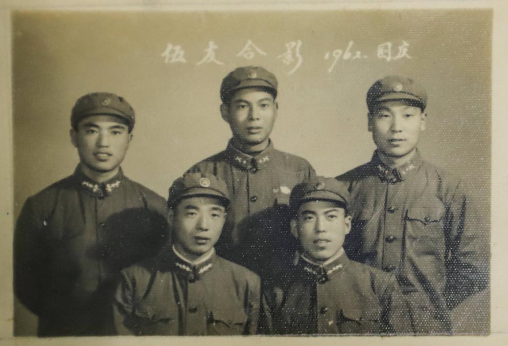 1962年,参加完国庆活动后曹荣安(后排居中)与战友合影