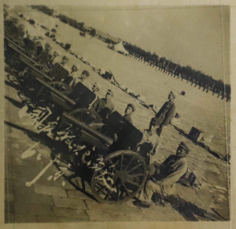 曹荣安(右数第七个)在北京南苑机场参加礼炮兵训练