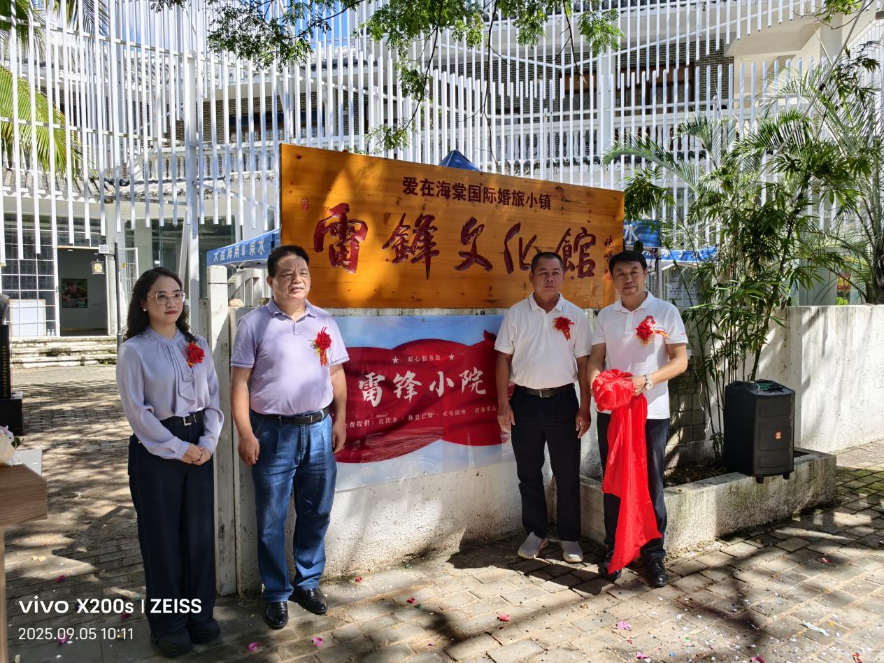 2025年9月5日,由三亚市雷锋文化促进会、爱在海棠国际婚旅小镇共同创建的海南首家雷锋小院在三亚市海棠区落成,同时落成的还有海棠区青年志愿者联合会志愿者之家,三亚市关工委、市委社会工作部、团市委、市妇联、市文明城市服务中心、市红十字会以及海棠区的有关部门负责同志出席了活动。
