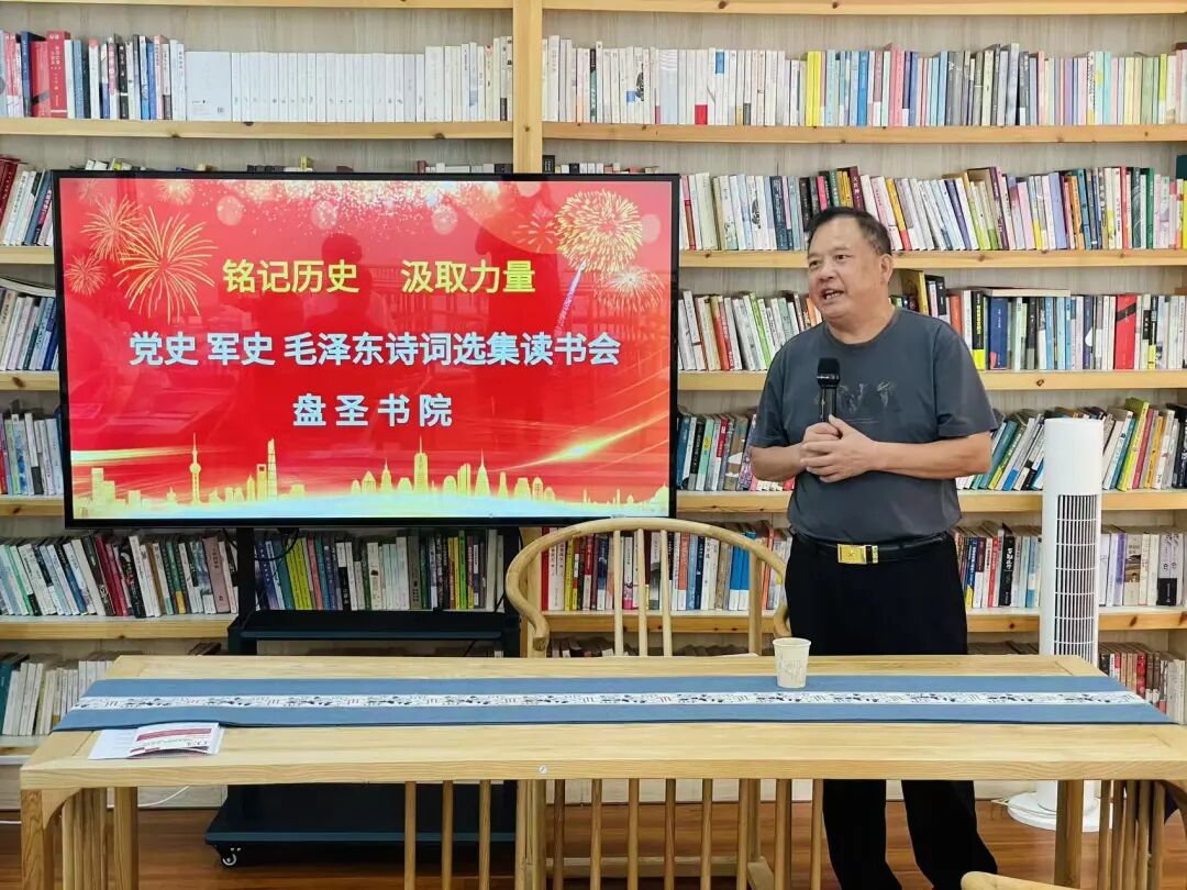 2025年9月6日上午,位于湖南湘江新区岳麓区风景秀丽的桃花岭盘圣书院,一堂铭记历史.汲取力量暨党史军史毛泽东诗词选集读书会在这里举行。素不相识的读书爱好者,从河东河西慕名来到盘圣书院参加读书活动。活动不仅为书友搭建了读书分享交流平台,同时传递了正能量,共同践行习近平总书记的 :把红色资源利用好,把红色传统发扬好,把红色基因传承好的要求。