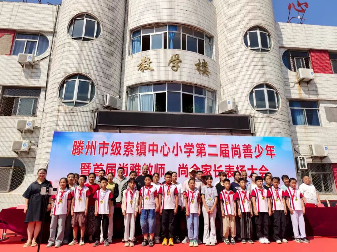 为表彰先进、凝聚力量,明确新学期发展方向,滕州市学雷锋志愿者联合会团体会员单位滕州市级索镇中心小学于9月9日隆重召开第二届“尚善少年”暨首届“尚雅教师”“尚合家长”表扬大会,全校师生全员参与,共同见证荣耀时刻。