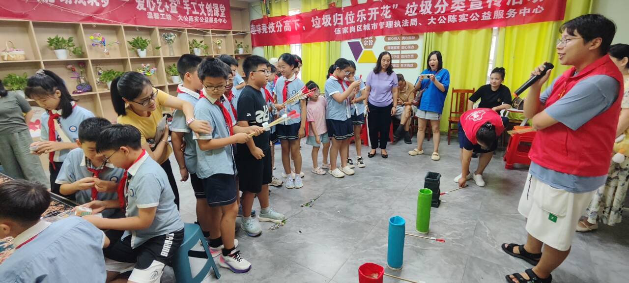 2025年9月6日下午由湖北宜昌市伍家岗区城管局、大公陈实公益服务中心联合开展垃圾分类趣味竞技赛,邀请伍家岗区实验小学北山校区六年级各班代表在大公残疾人之家开展。