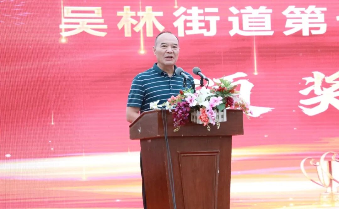吴敬雷在会上讲话。他向获奖学生表示祝贺,对教师和爱心企业表示感谢,充分肯定全区及吴林街道教育发展成效,并从“办好人民满意教育、争做‘四有’好老师、培养新时代奋斗少年、凝聚尊师重教社会合力”四个方面提出殷切希望。