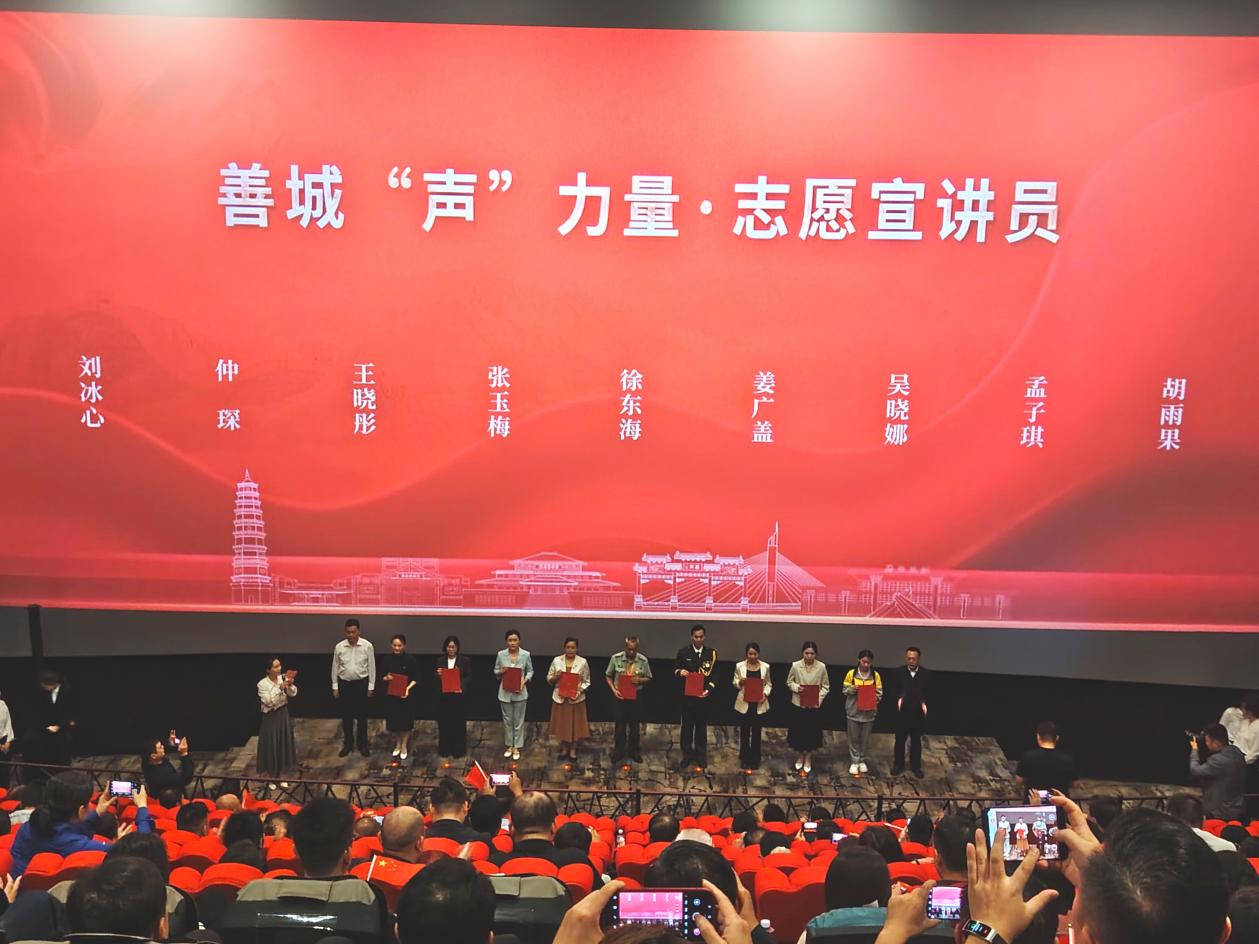 活动现场,首先为善城“声”力量宣讲志愿者颁发证书,接着来自不同岗位的志愿宣讲代表围绕“老山烽烟铸军魂一战场上的记忆”、“天安门广场看升旗”、“走在富强的大道上”等主题展开宣讲,深刻领会,他们用朴实的语言、真挚的情感,讲述了一个个感人至深的历史故事,展现了滕州志愿者“奉献、友爱、互助、进步”的精神风貌,赢得了现场观众的阵阵掌声。