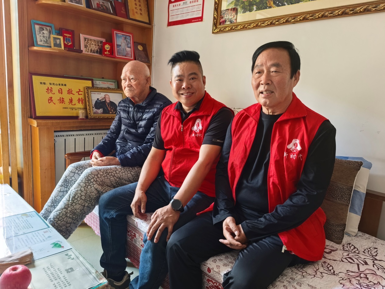新时代服务队志愿者井宝誉仔细询问了老人的身体和精神状况。今年97岁的张爷爷说:“感谢政府及志愿者对抗战老兵的关心!